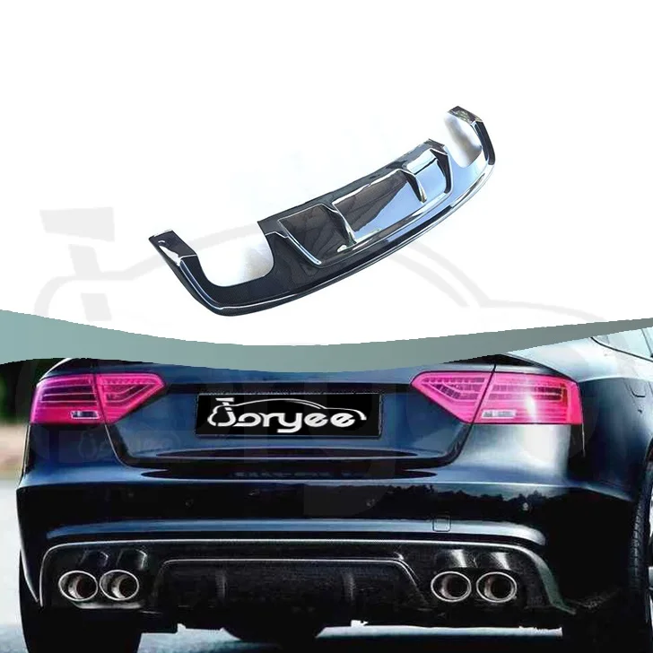 Joryee Carbon Fiber Rear Bumper Diffuser Exhaust Body Kit Car Part for Audi A5 Quattro S-LINE 4D 2012-2016 2014 Tuning Accessory