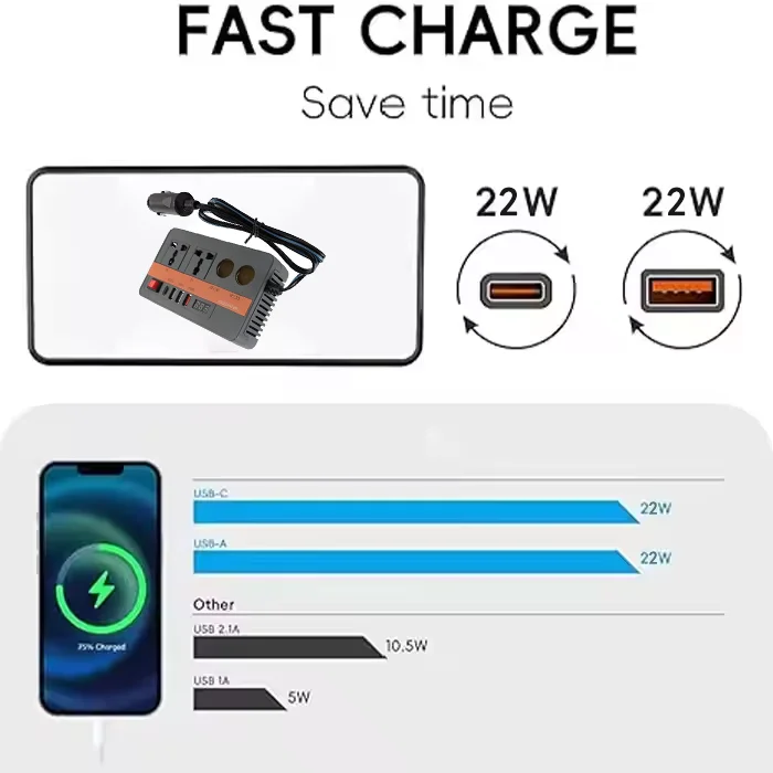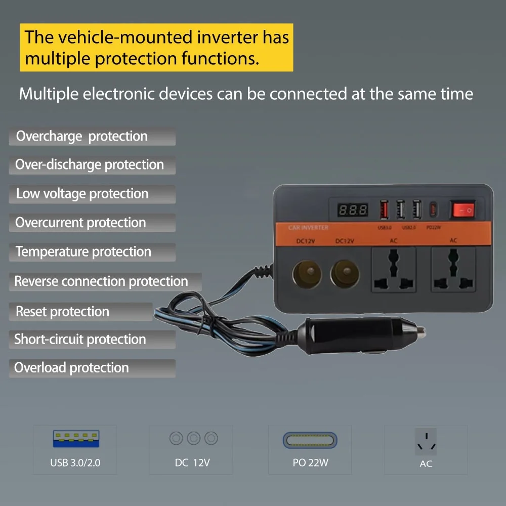 Converter per auto con ricarica rapida USB tipo-c Standard europeo 300W Socket universale 12V a 220V Inverter per auto![]() |