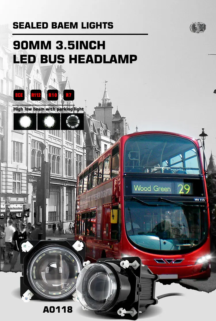 E-mark ECE Certification 3.5 Inch Led Headlight 45W 90MM Led Bus Headlamp with High Low Beam for Bus Tractor![]() |