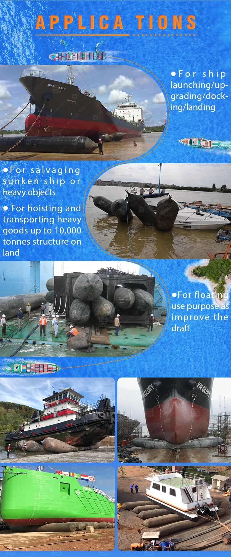 Heavy Lifting Underwater air Bags Natural Rubber BV Certificated Marine Boat Airbags