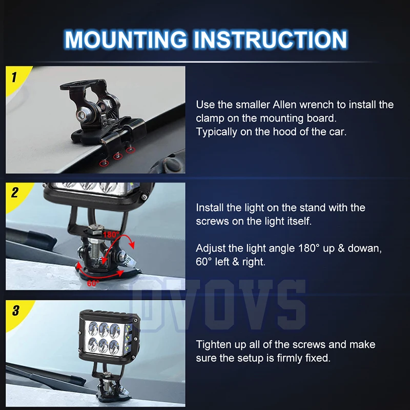 OVOVS 304 Stainless Steel Led Hood Light Mounts Hood Clamp Lights Mounts Universal Led Light Bar Mounting Brackets![]() |