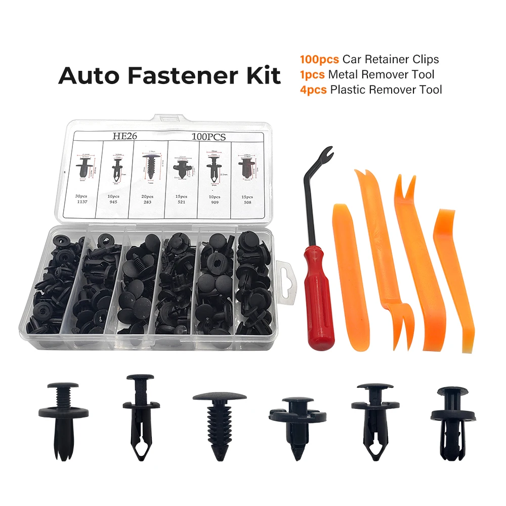 100 PCS Auto Fastener & Clip Car Push Retainer Bumper Clips Sets