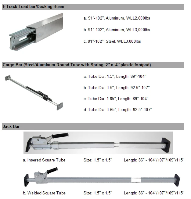 Factory Wholesale DHR Brand Heavy Duty 89"-103" Adjustable Aluminum or Steel Load Lock Cargo Bar for E Track Cargo Control China![]() |