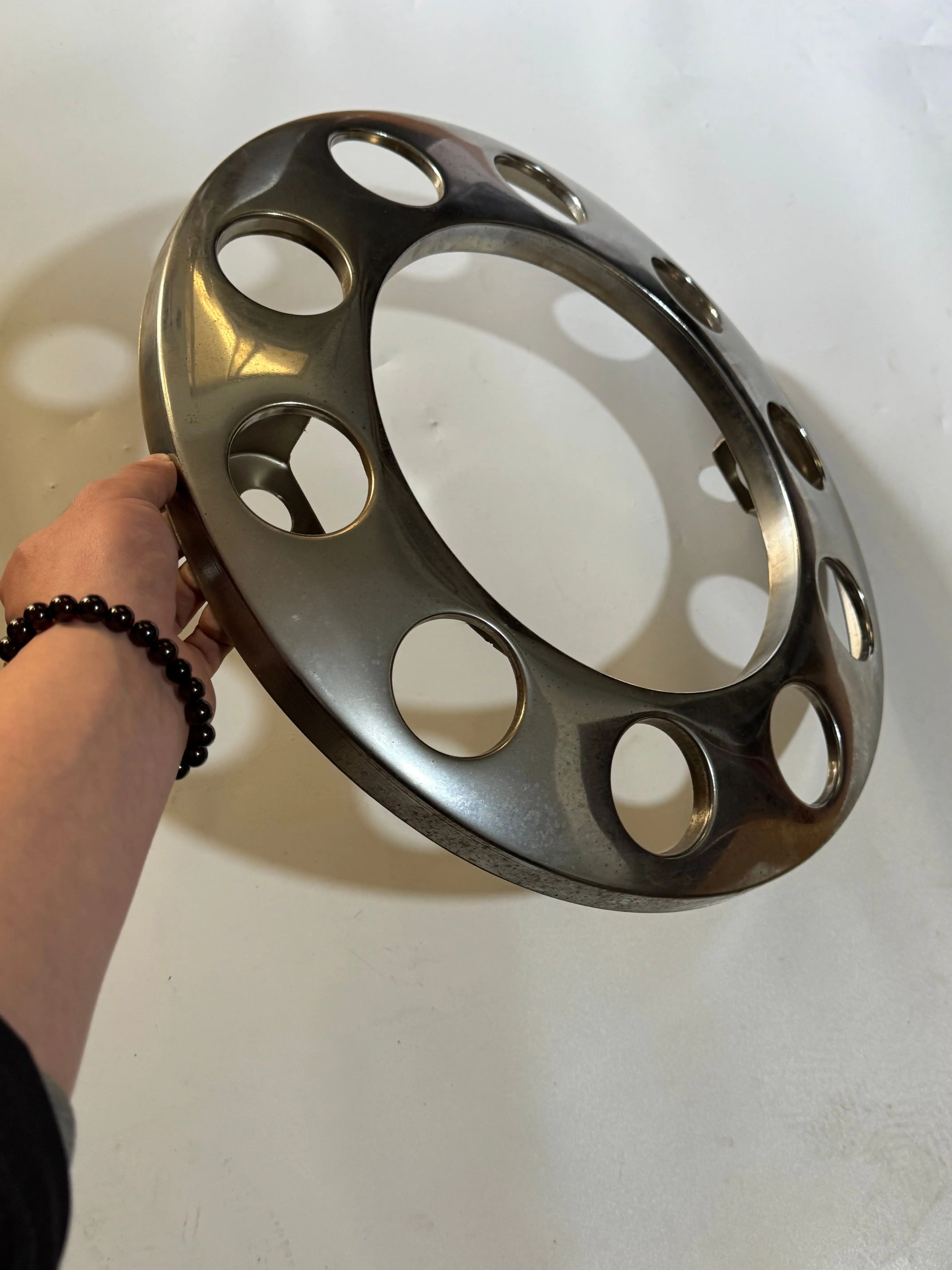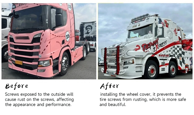 Custom Truck Accessories Electroplated Silver Plating 10 HOLE 22.5 Inch Hollow Wheel Covers with Curvature for Volvo Truck![]() |