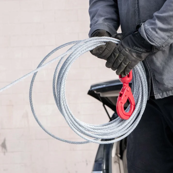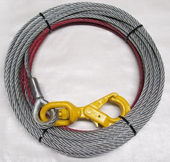Towing Product Series 3/8 X 100 ft Winch Cable Line Steel Belt with Alloy Self-locking Hook for Tow Truck Fiber Core